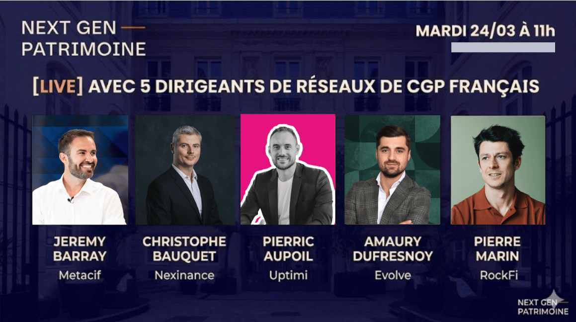 Mardi à 11h00, lors du live Next Gen Patrimoine, je réunis 5 dirigeants de réseaux pour un échange direct et sans langue de bois.